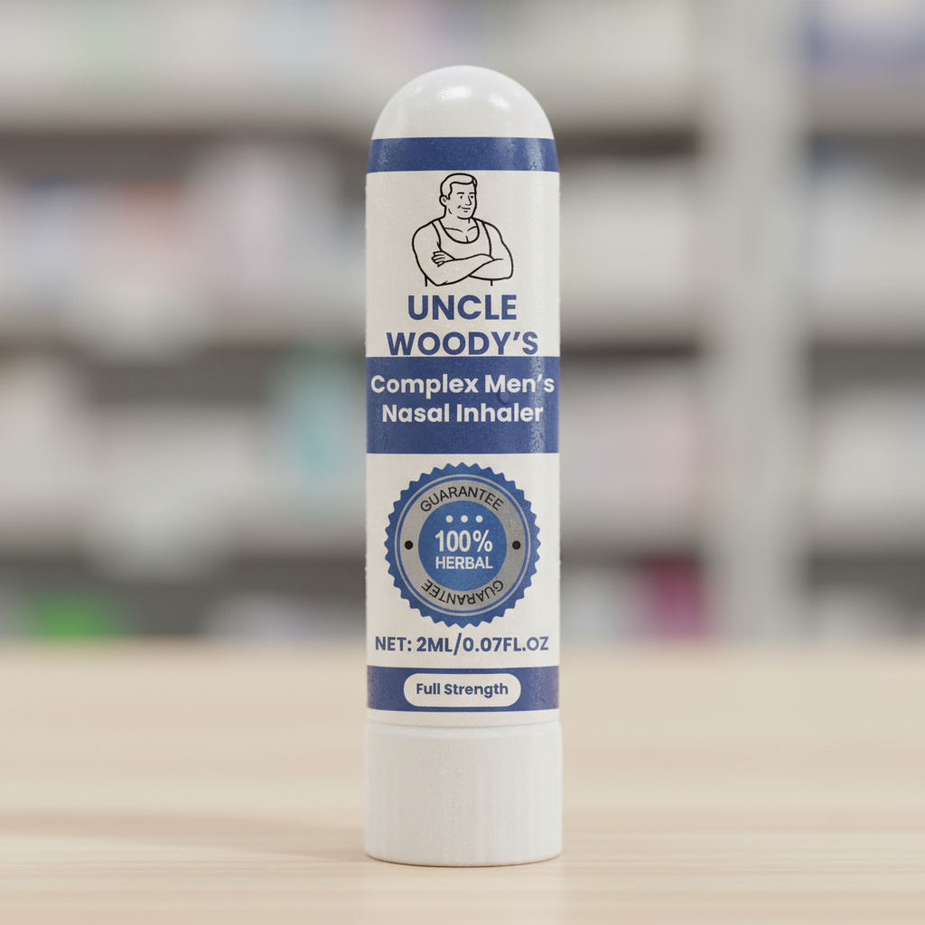 Discover our top-selling, one-of-a-kind Woody’s Nasal Inhaler — crafted to support men’s vitality and performance.
