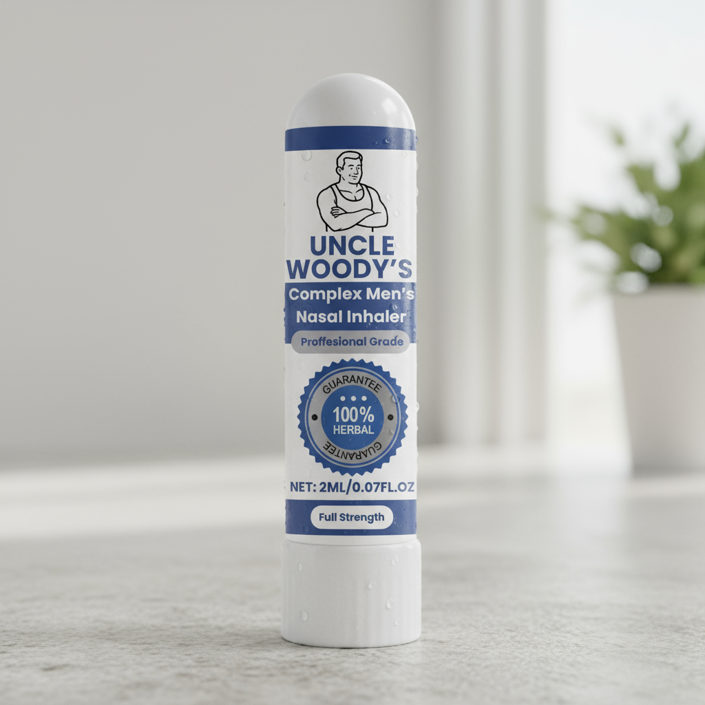 Discover our top-selling, one-of-a-kind Woody’s Nasal Inhaler — crafted to support men’s vitality and performance.